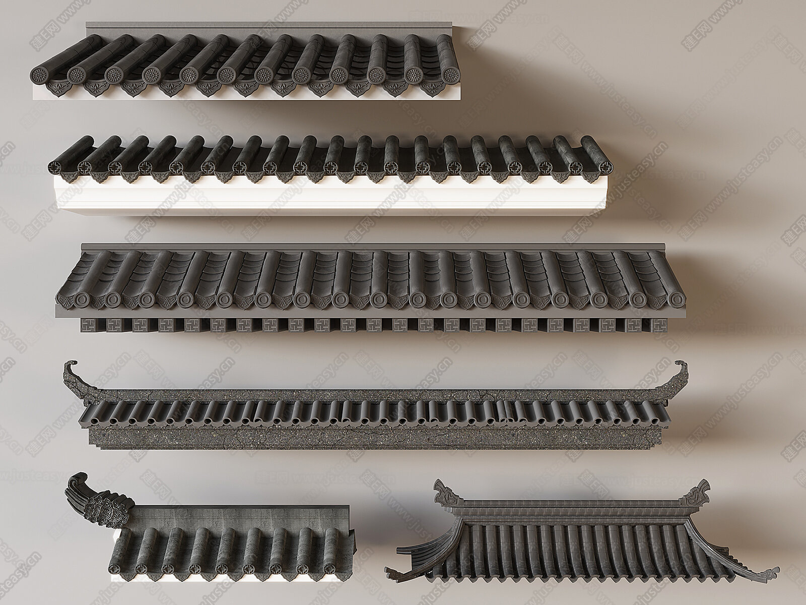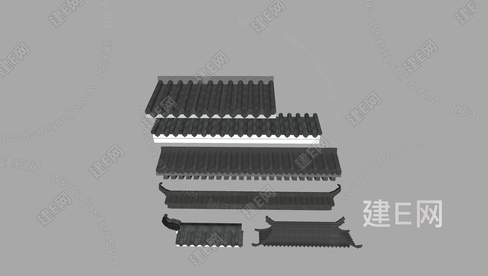 中式建筑古建屋檐 屋顶瓦片青瓦 su模型下载